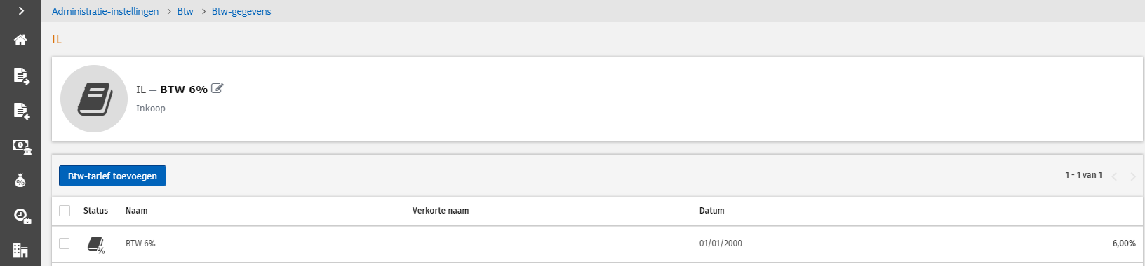 Voor accountants en administratiekantoren: Deze actie kan ook worden uitgevoerd op omgevingsniveau. Zie voor meer informatie: Kan ik het btw-tarief in al mijn administraties wijzigen?