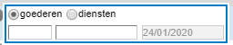 - Wanneer het keuzerondje Goederen wordt geselecteerd, kan de leverdatum volgens de regelgeving niet afwijken van de factuurdatum en dus ook niet in het extra scherm worden ingevoerd. Bij Diensten mag de datum wel afwijken.