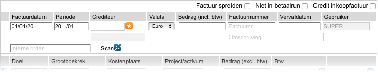 In het vervolg is in het invoerscherm 'Inkoopfactuur' een veld voor de interne order beschikbaar dat verplicht van een waarde voorzien moet worden.