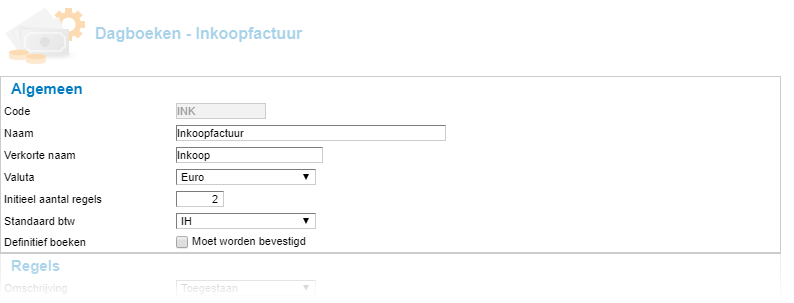 De instellingen en kenmerken kunnen per dagboek verschillen en zijn naar wens aan te passen. Ga voor het opvragen van een specifiek dagboek naar Instellingen > Administratie-instellingen > Dagboeken.