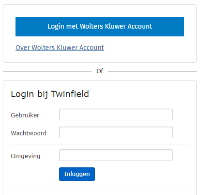 AlternatiefMet het Wolters Kluwer Account kan ook als volgt eenvoudig worden ingelogd bij Twinfield Boekhouden of Twinfield Samenwerken: