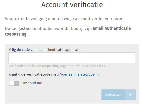 De toegestane methoden voor dit bedrijf zijn Email Authenticatie toepassing.