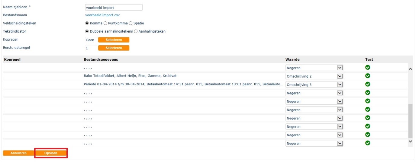 Dit is een eenmalige actie: het sjabloon is beschikbaar voor de gehele omgeving en kan na het aanmaken altijd gebruikt worden wanneer een bestand met dezelfde opbouw wordt geïmporteerd.