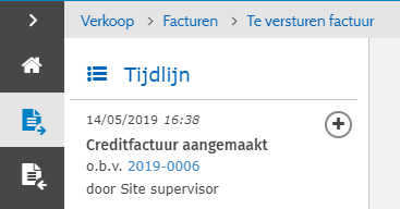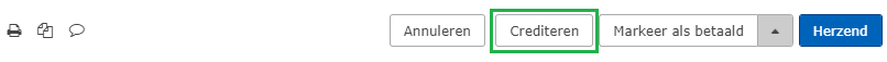 Een verstuurde factuur is in deze module altijd definitief geboekt. Onderaan de factuur is de optie [Crediteren] te vinden, hiermee zet Twinfield direct de creditfactuur van de eerder verstuurde factuur klaar. Dit is een 'Te versturen' factuur die vervolgens naar wens kan worden bewerkt.