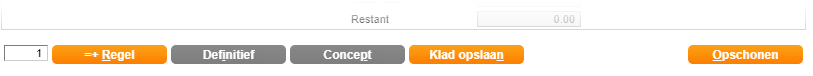 • [Concept]: Verwerk de boeking als concept in de administratie met als resultaat een journaalpost die nog wel aanpasbaar is. De button is pas inzetbaar zodra deze oranje is. De button is aanklikbaar (oranje) zodra de ingevoerde boeking in balans is.
