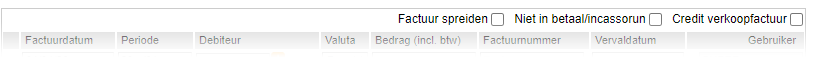 • Factuur spreiden: Spreid eenvoudig de omzet van de nota door de optie 'Factuur spreiden' te markeren. Geef vervolgens via een extra regel (in de sectie Kopregel) aan over welke periode(n) de nota te spreiden en via welke tussenrekening deze spreiding verloopt. Meer informatie, zie spreidingsmethode 1 van artikel Kan ik kosten en opbrengsten verdelen over meerdere perioden?