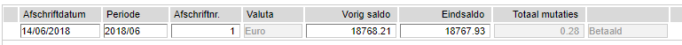 Het afschriftnummer is overigens een aanpasbaar veld en kan worden aangepast in een conceptboeking. Nadat een elektronisch afschrift is verwerkt en is geboekt als conceptboeking kan deze geopend worden en kan het afschriftnummer worden gewijzigd. Alle grijze velden zijn niet aanpasbaar.