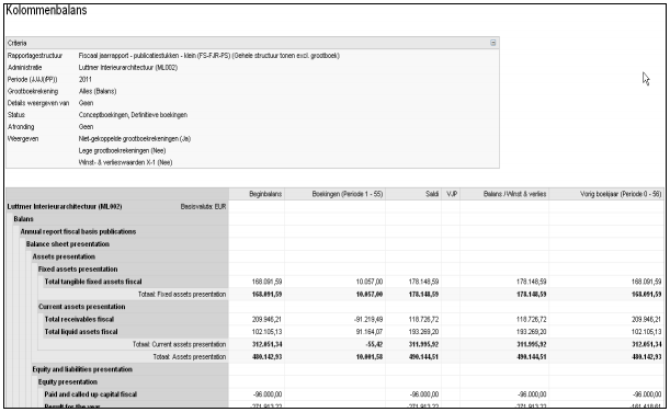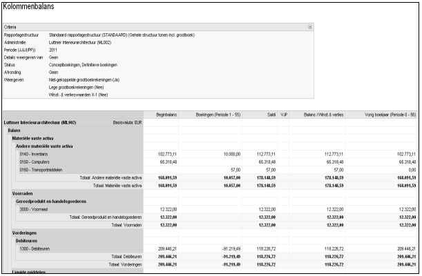 Het rapport kolommenbalans zoals een klant dat graag zou willen zien: