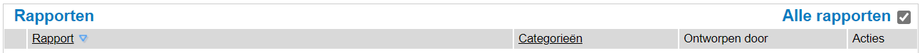 Er ontbreekt een rapportOntbreekt er een rapport? Heeft bijvoorbeeld een collega een rapport aangemaakt, maar zie je deze nog niet, vink dan de optie ''Alle rapporten'' bovenaan de pagina van het Rapportenbeheer aan.