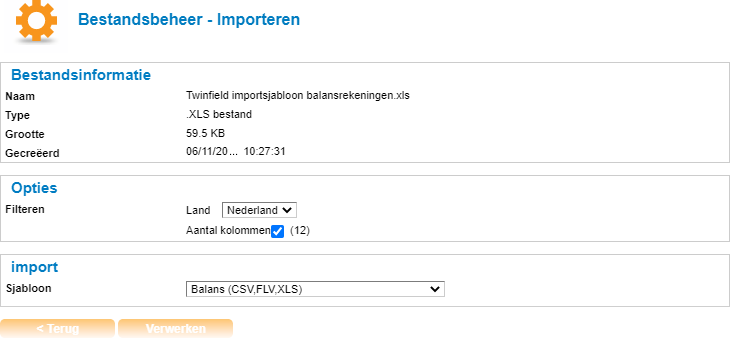 - Klik vervolgens op [Verwerken] om het bestand daadwerkelijk te importeren in de administratie.