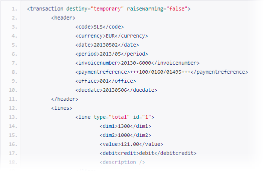Naast de genoemde importsjablonen (Excel) zijn gegevens ook via een XML-bestand in te lezen. Diverse voorbeelden van XML-bestanden zijn te vinden in de 'Twinfield API Documentation' (
