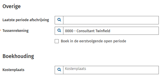 | Boek in de eerstvolgende open periode | Soms | Wanneer de periode waarin de laatste afschrijving heeft plaatsgevonden is gesloten, dan kun je dit vinkje aanzetten om te boeken in de eerstvolgende periode die wel openstaat. |