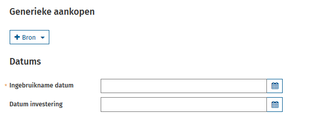 | Bron | Nee | Gebruik deze knop om generieke inkoopwaardes toe te voegen aan het activum. Ben je nog niet bekend met regimes? Lees dan eerst dit artikel: Welke regimes zijn er? |