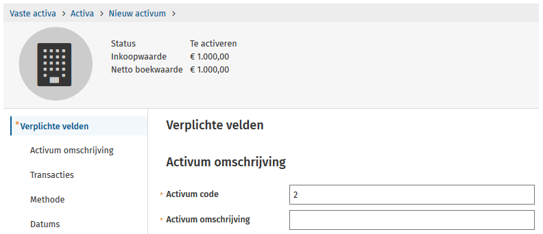 Dit artikel hoort bij: Een nieuw activum aanmaken
