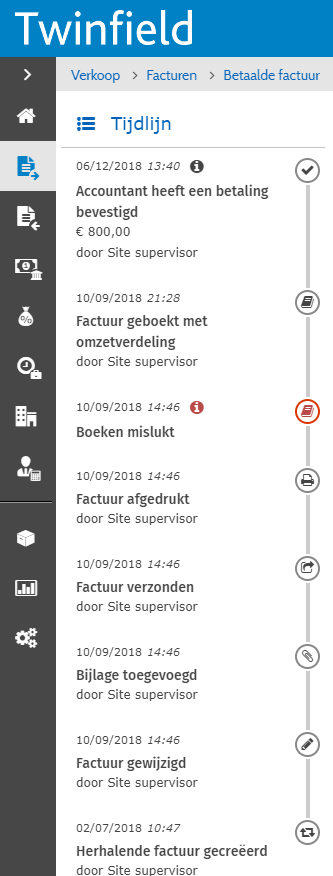 In de verkoopmodule wordt er in de tijdlijn op de factuur meer informatie gegeven over alle acties.